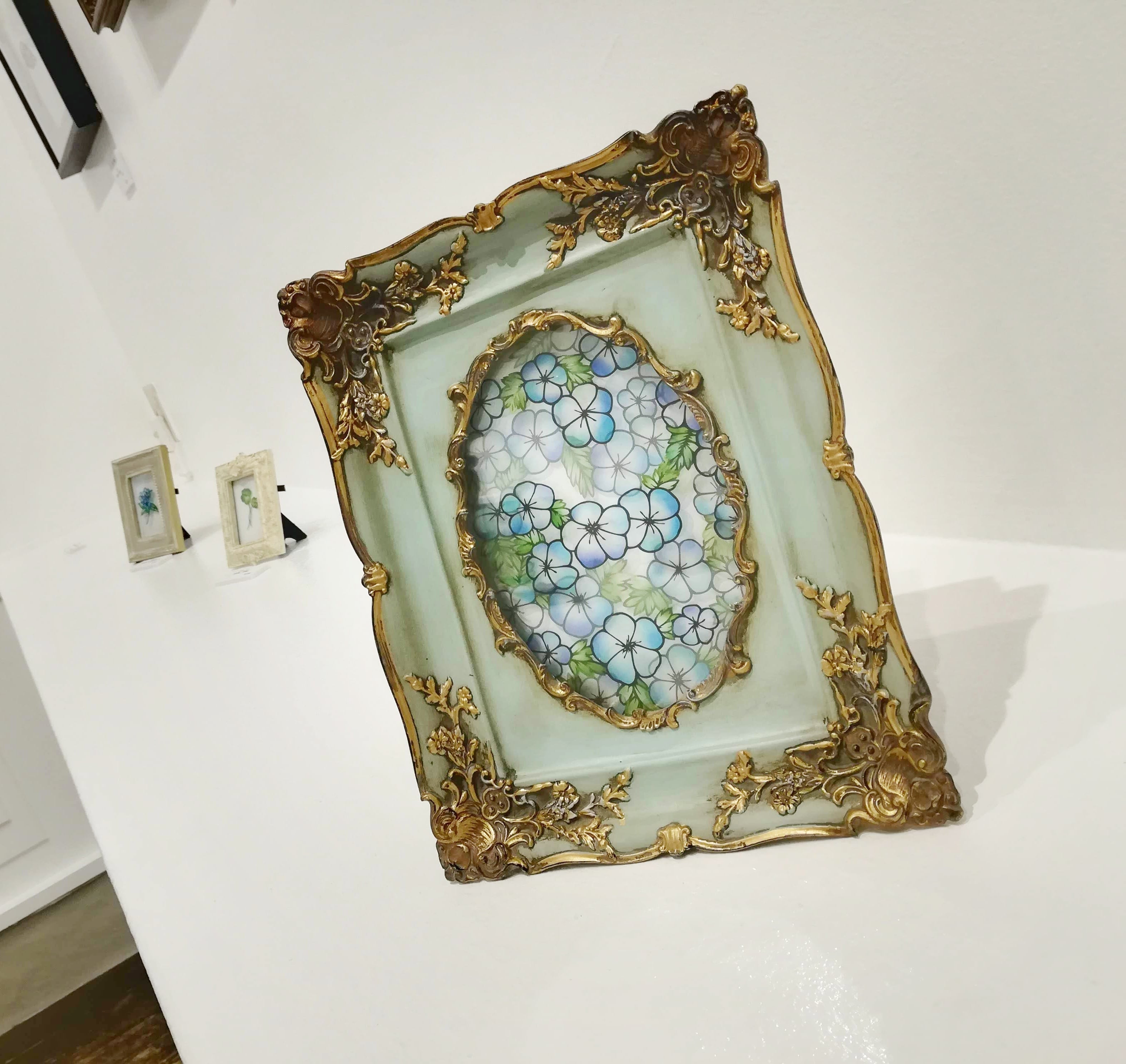 小さく愛らしいネモフィラの花を切り絵で表現した作品です。