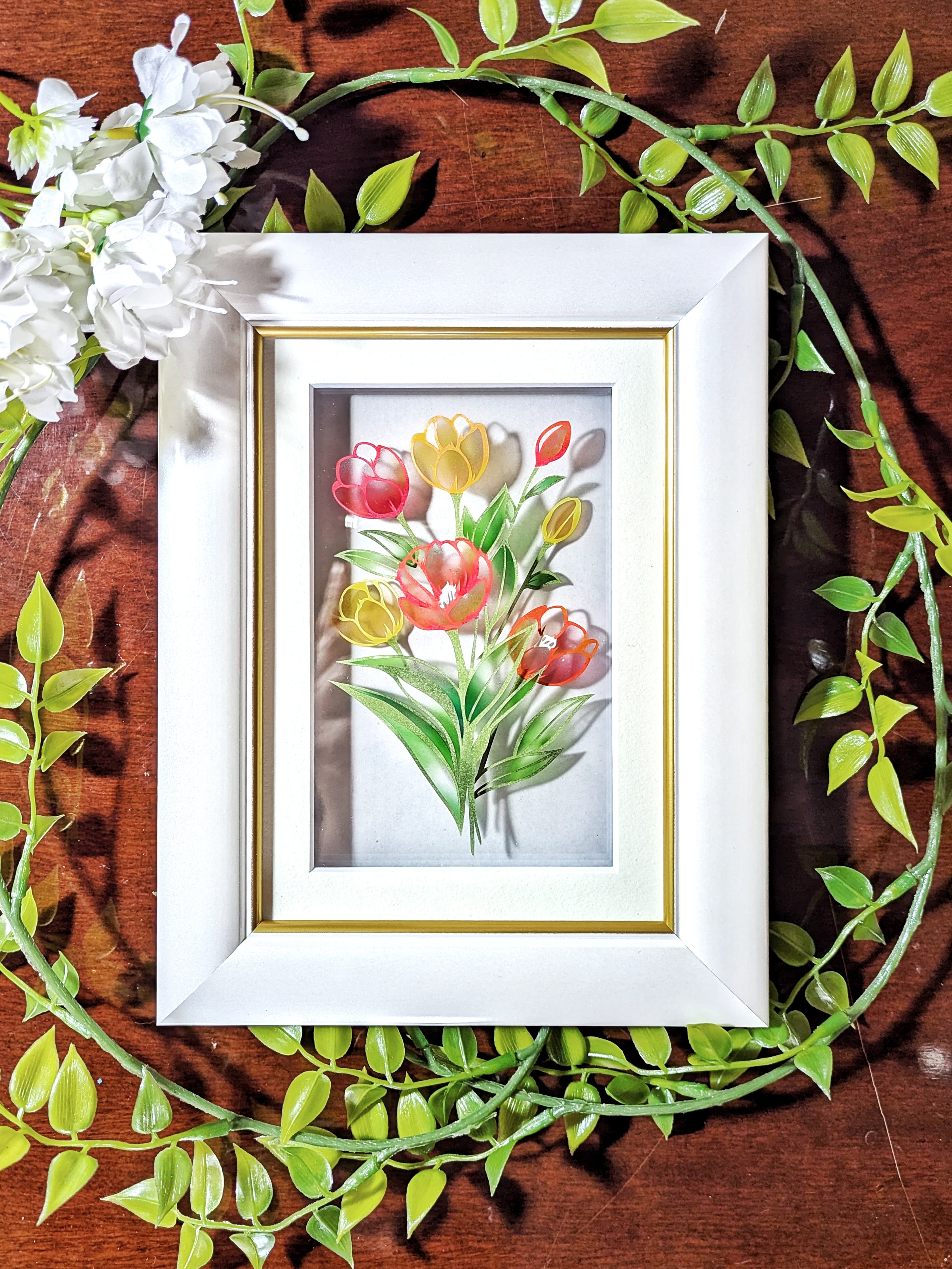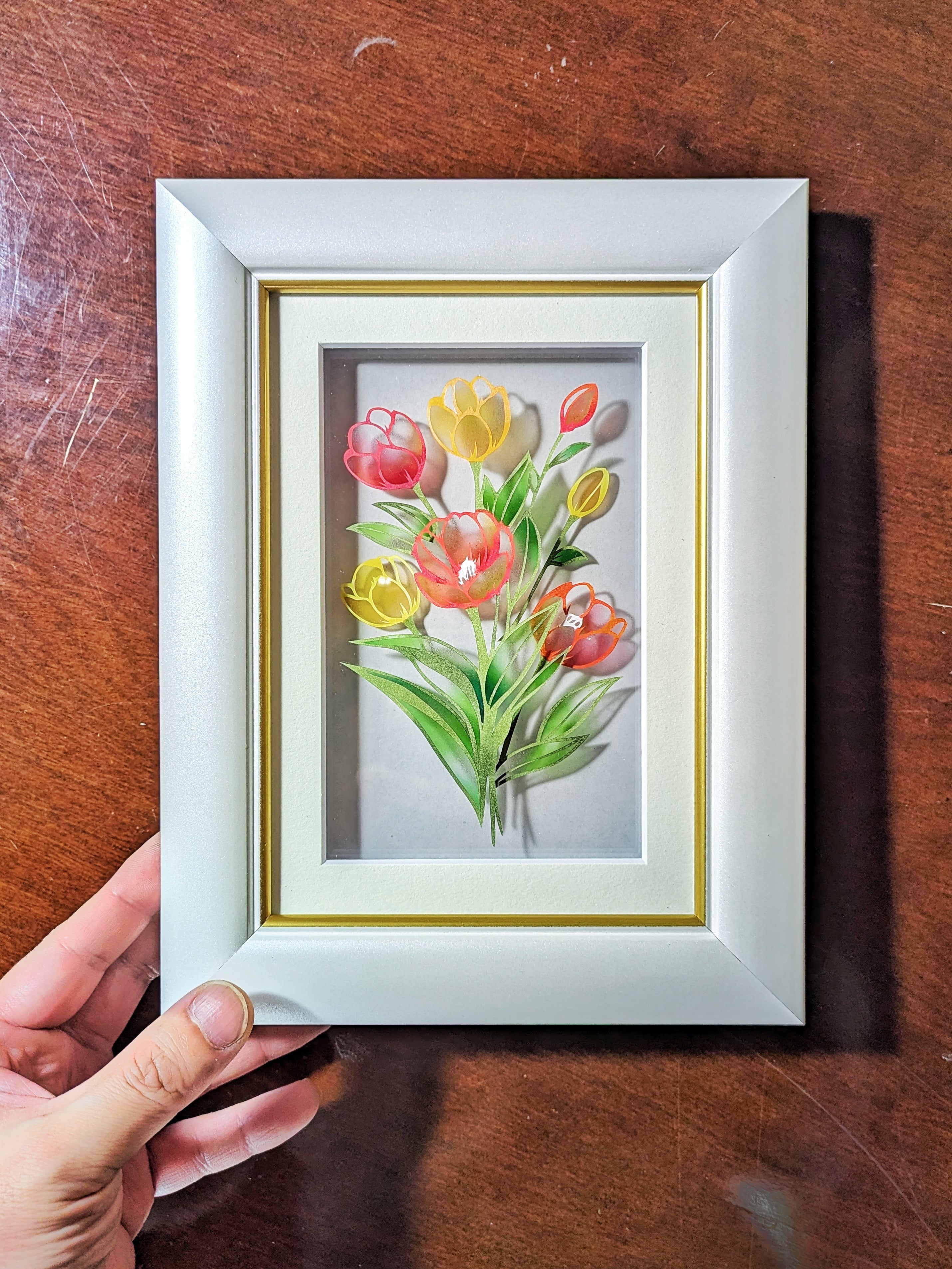 丁寧に仕上げられた切り絵は、光の当たり具合や飾る角度によって、異なる表情を見せます。高級感あふれるデザインは、どんなインテリアにも調和し、幅広いシーンでご利用いただけます。